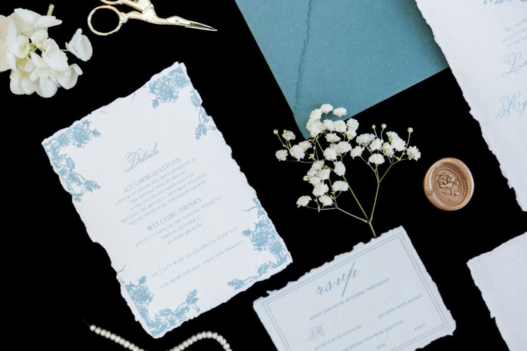 When you come prepared with a few thoughtful details, we can create custom wedding invitations and cohesive wedding stationery that feel meaningful from the very first impression to the day of details.