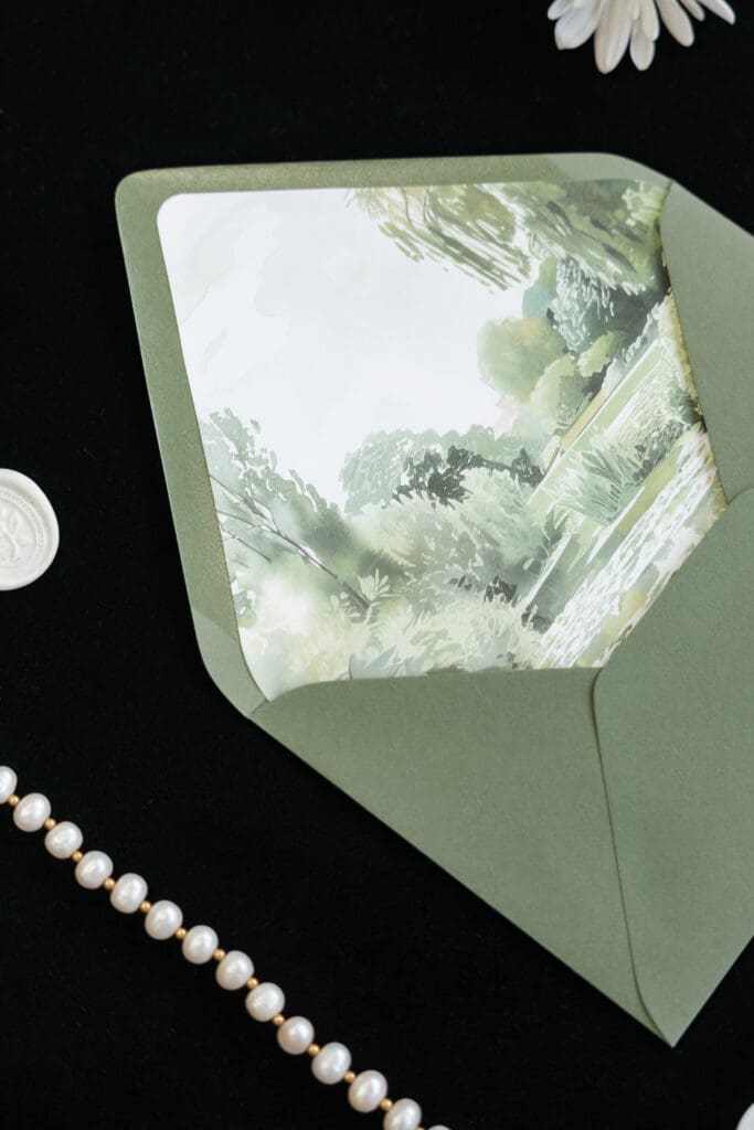 Florals, bridesmaid dresses, linens, or venue photos can all influence your wedding stationery design. Color impacts everything from ink tones and envelope selections to wax seals and embellishments, so even a starting point is incredibly helpful.
